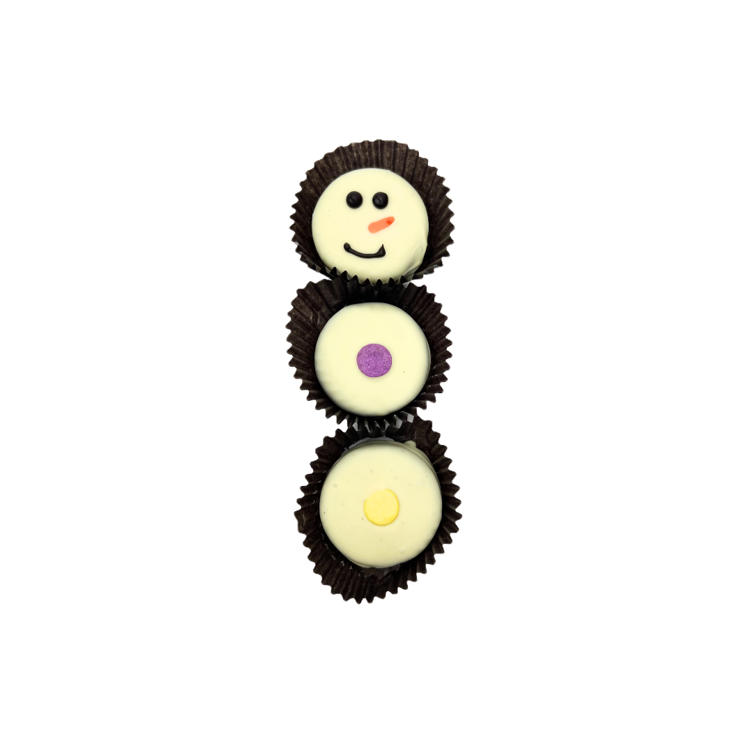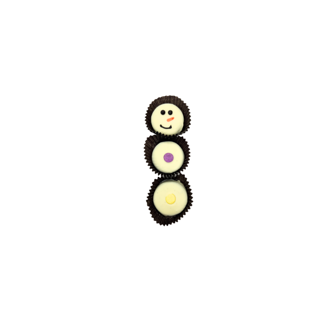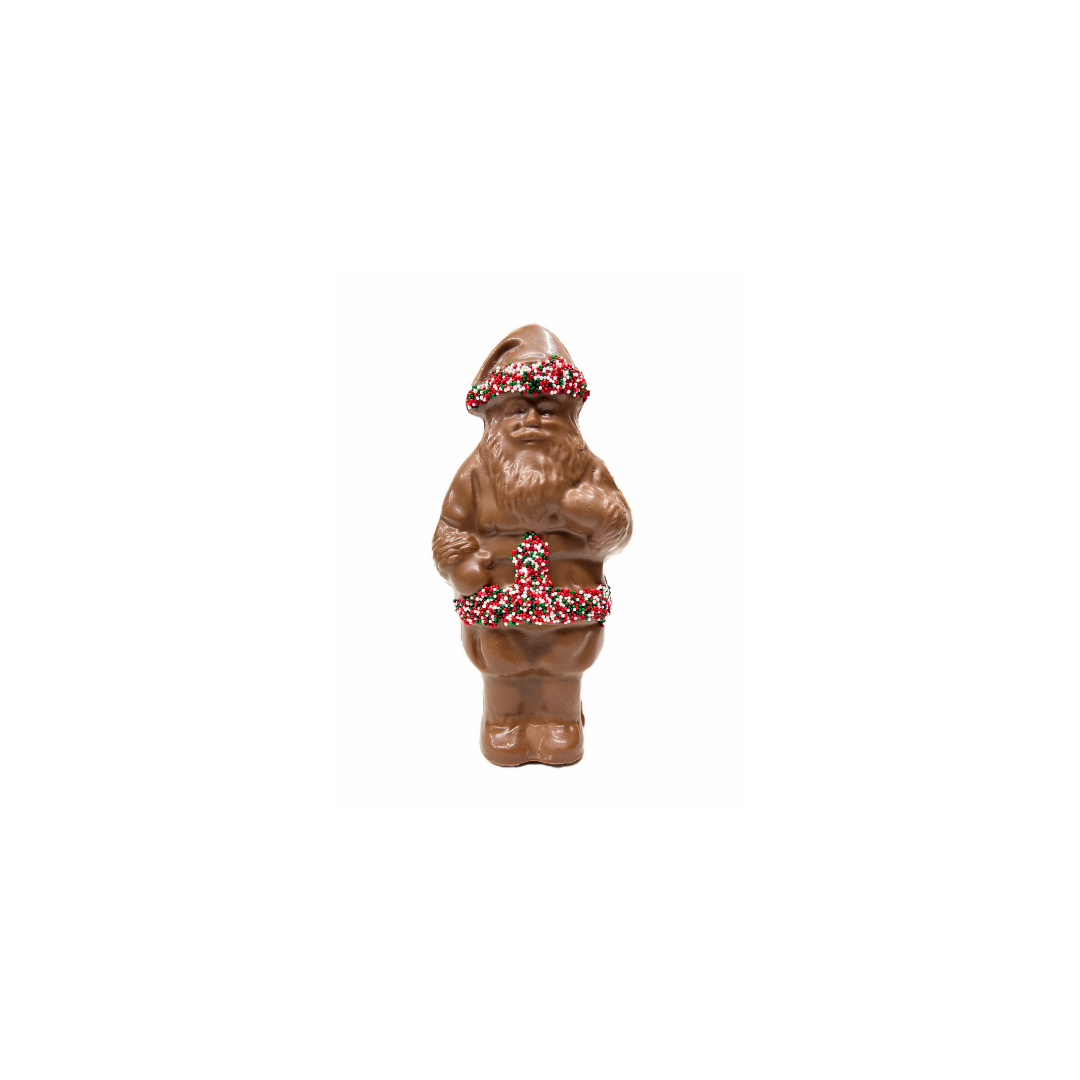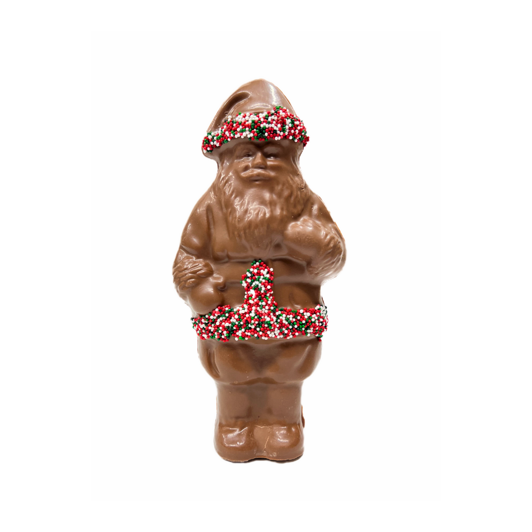 Each Santa is hand made and decorated with nonpareil seeds. Santa is wrapped in cellophane and tied with ribbon. Available...